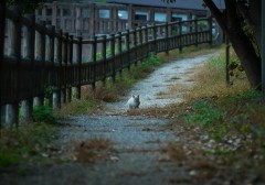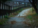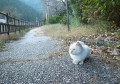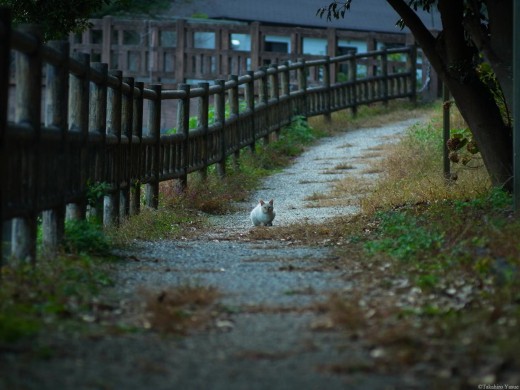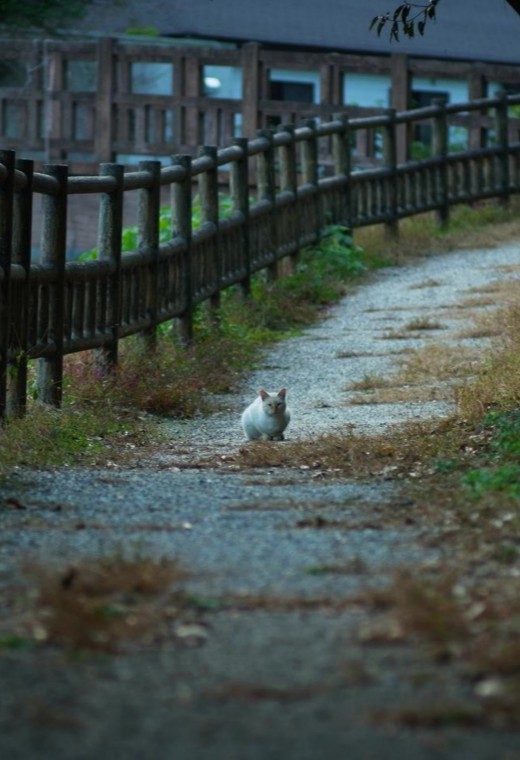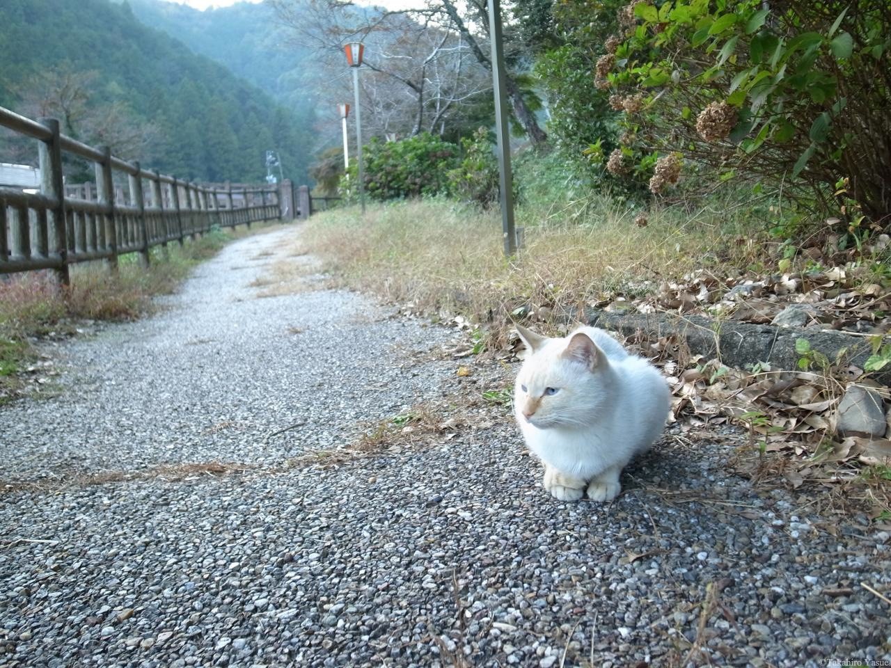 そろそろかえろうかなと思ったとき、レストハウスの方から一匹の猫が。青い瞳をした猫がノッシノッシと歩いてきました。ここの主かな? しばらくふたりで?くつろいでいましたが、いつの間にか飽きたのか、青い瞳の猫は反対方向に歩いて行きました。