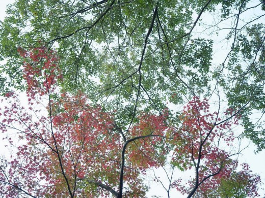 でもところどころ木々が色づいていたり、場所によっては真っ赤に染まっていたり、一本の木で緑から黄色や赤にグラデーションがかかっていたり、わりと楽しめました。